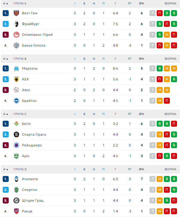 🏆 Ліга Європи. 3-й тур. 26 жовтня