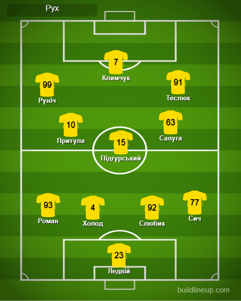 «Рух»: Ледвій, Сич, Слюбик, Холод, Роман, Підгурський (Плюман, 73), Сапуга, Притула (Пастух, 55), Теслюк (Квасниця, 55), Руніч (Соломон, 73), Климчук