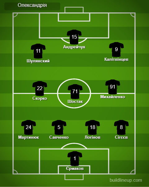 «Олександрія»: Єрмаков, Савченко, Логінов, Сігєєв, Скорко, Мартинюк (Кулаковський, 85), Андрейчук (Погорілий, 46), Калітвінцев, Михайленко (Смирний, 66), Шостак (Білошевський, 73), Шулянський (Джевані, 66)