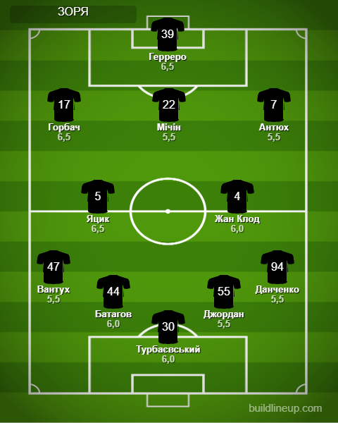 «Зоря»: Турбаєвський - Данченко, Батагов, Джордан, Вантух (Снурніцин, 39) - Яцик, Жан Клод - Кирюханцев, Мічін (Нагнойний, 64), Горбач - Герреро.