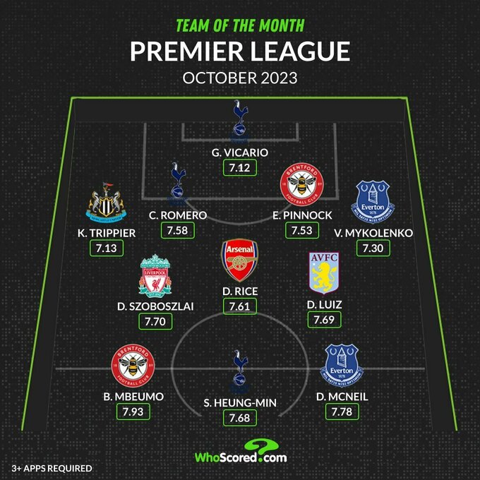 Захисник «Евертона» і збірної України Віталій Миколенко увійшов до символічної збірної жовтня місяця Англійської Прем'єр-ліги за версією статистичного порталу WhoScored.