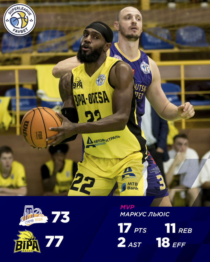 Одеська «БІПА» вирвала перемогу у «Старого Луцька» з рахунком 77:73 в матчі регулярного чемпіонату Суперліги.