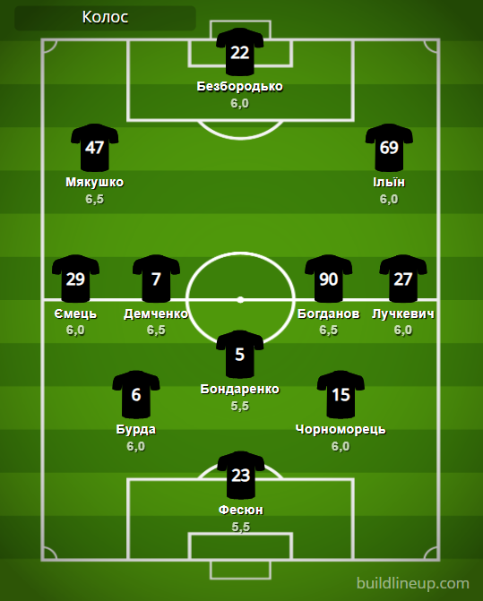 «Колос»: Фесюн – Ємець, Бурда, Бондаренко, Чорноморець, Лучкевич – Демченко (Тотовицький, 61), Богданов (Мілько, 69) – Мякушко (Велетень, 79), Безбородько (Салабай, 79), Ільїн (Болбат, 61).