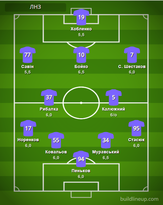 ЛНЗ: Пеньков – Норенков, Ковальов, Муравський, Стасюк – Рибалка, Калюжний (Олійник, 7, Тарасенко, 82) – Савін (Наумець, 68), Бойко, С. Шестаков (Прядун, 81) – Хобленко.