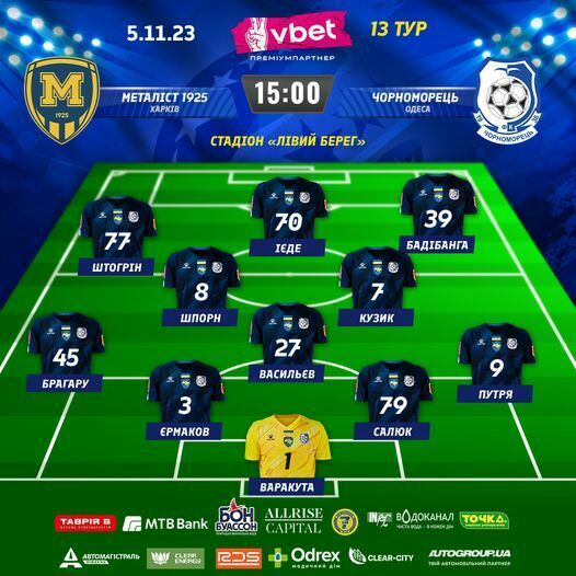 Харківський «Металіст 1925» і одеський «Чорноморець» зустрінуться у неділю, 5 листопада, у матчі 13-го туру Української Прем'єр-ліги. Команди зіграють на стадіоні «Лівий берег» в Київській області. Початок призначено о 15:00.