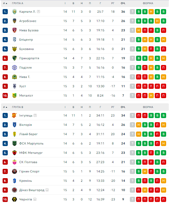 Перша ліга. Матчі 15 туру, 5 листопада. Дивитися онлайн. LIVE