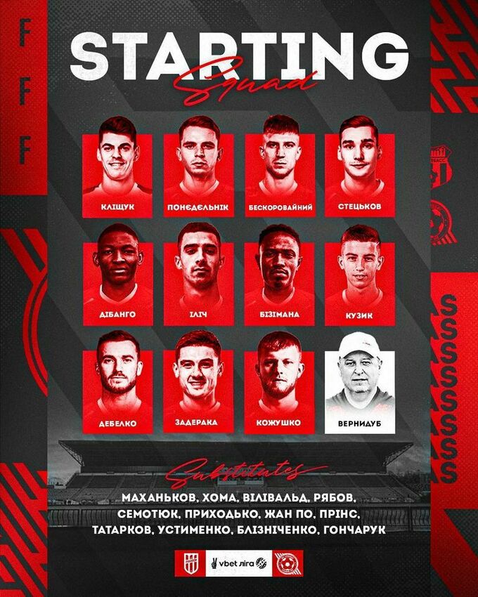 Запасні: Маханьков, Хома, Вілівальд, Рябов, Семотюк, По, Гончарук.