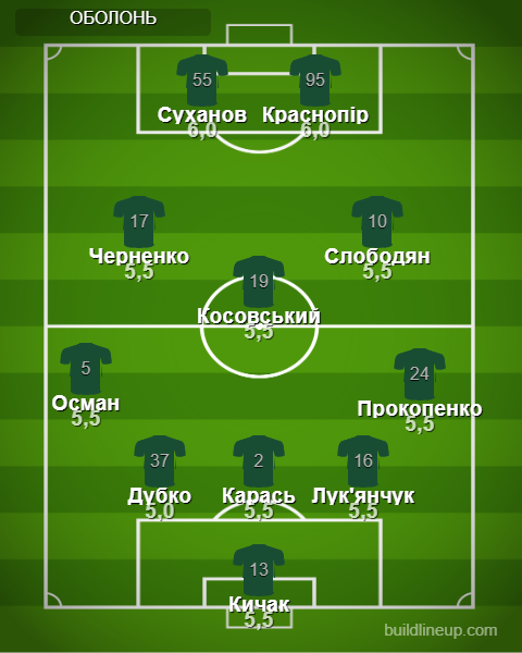 Заміни Оболоні: Груша - 5,5, Вовкун - 5,5, Фатєєв - б/о.