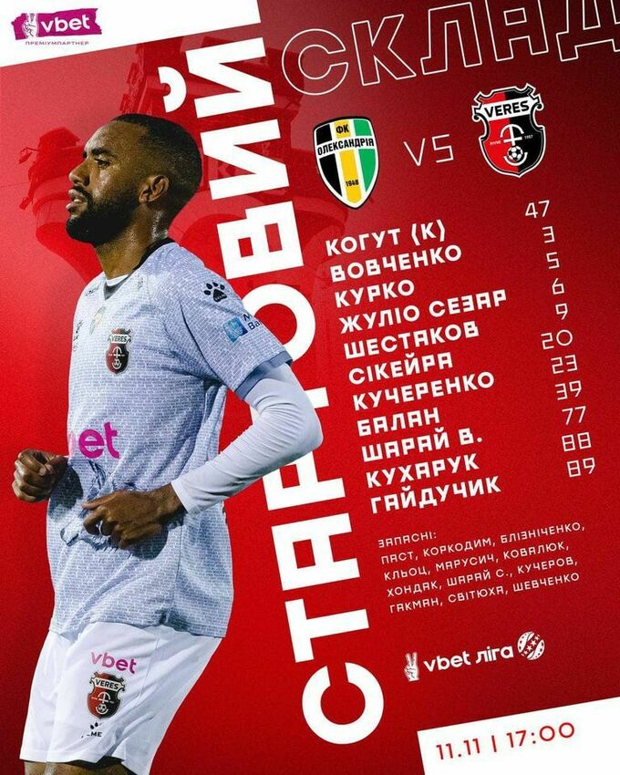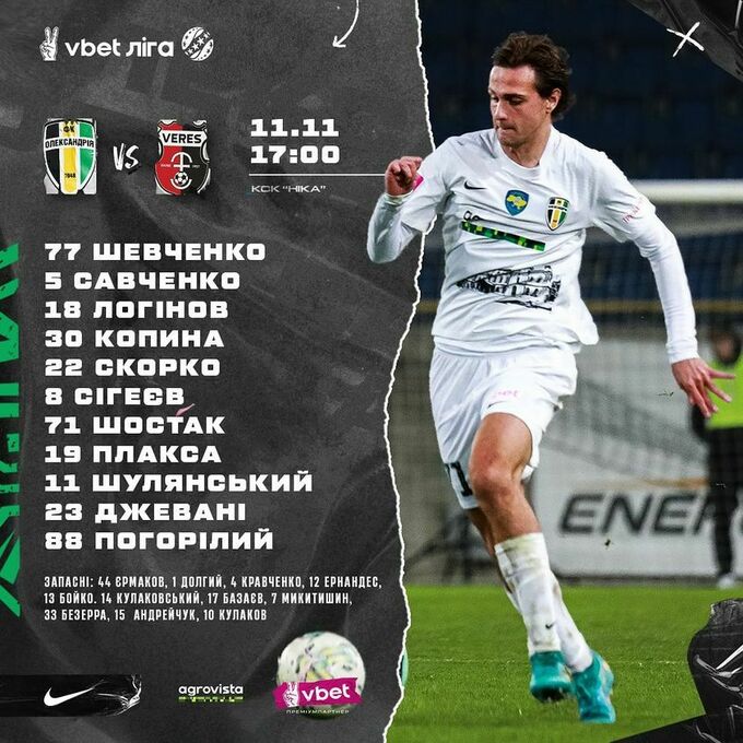 У суботу, 11-го листопада, відбудеться поєдинок 14-го туру Української Прем'єр-ліги, у якому змагатимуться «Олександрія» і рівненський «Верес». Матч відбудеться в Олександрії, на полі стадіону КСК «Ніка», початок о 17:00.