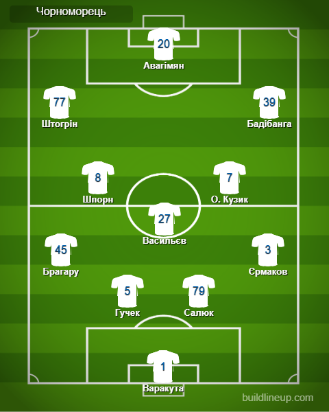 «Чорноморець»: Варакута, Cалюк, Єрмаков, Гучек, Брагару, Васильєв, Штогрін, Кузик, Шпорн, Бадібанга, Авагімян (Хадіда, 50).