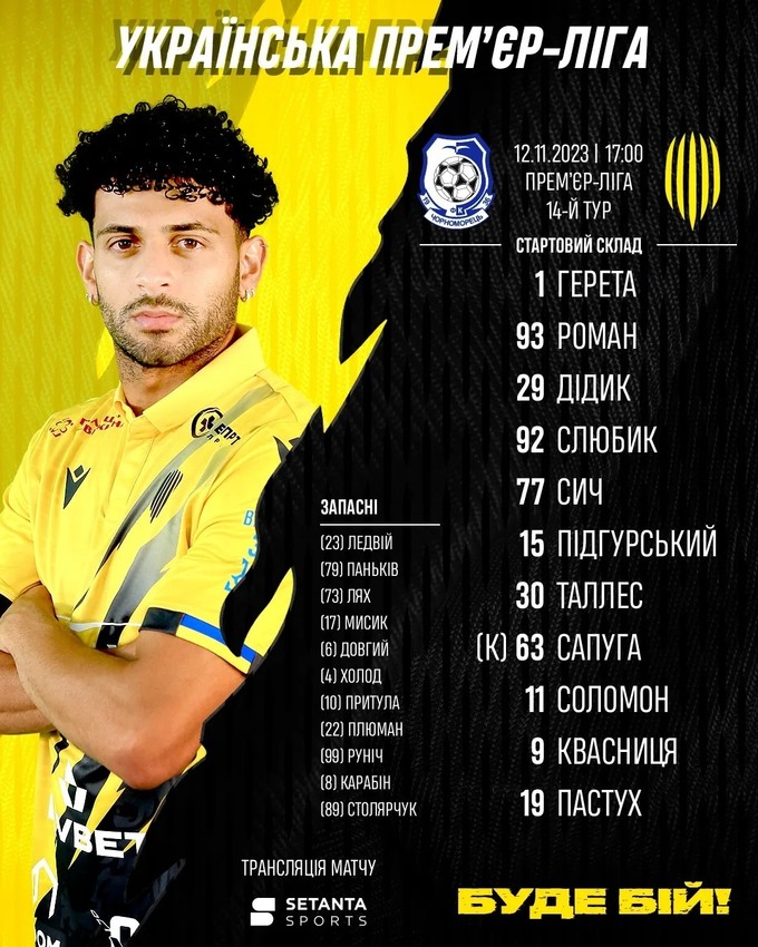 Запасні: Ледвій, Паньків, Лях, Мисик, Довгий, Холод, Столярчук.