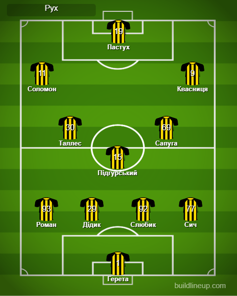 «Рух»: Герета, Сич, Слюбик, Дідик, Роман, Пастух (Плюман, 66), Сапуга, Таллес (Притула, 89), Соломон, Підгурський (Карабін, 78), Квасниця (Руніч, 89).