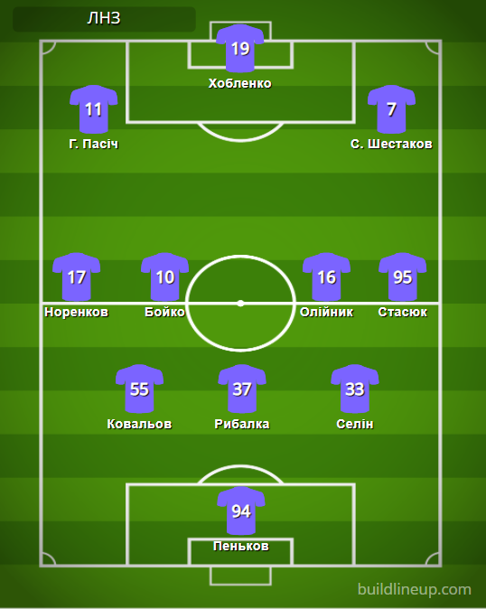 ЛНЗ: Пеньков – Норенков, Ковальов, Рибалка (Банада, 81), Селін (Насонов, 56), Стасюк – Бойко, Олійник (Прядун, 87) – Г. Пасіч, Хобленко (Савін, 81), С. Шестаков (Тищенко, 82).