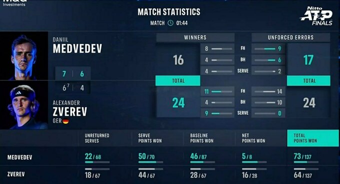 Завдяки цій перемозі Медведєв очолив квартет із двома перемогами та достроково вийшов у плей-оф Підсумкового турніру АТР 2023.