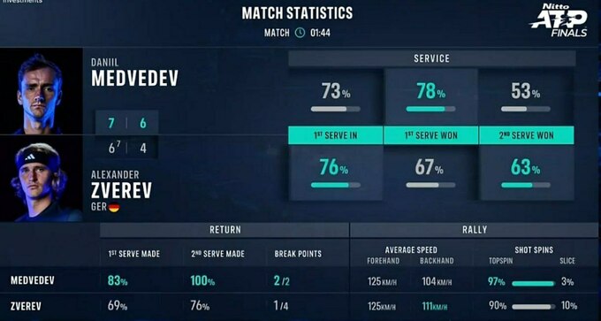 Це була 19-та зустріч тенісистів. Рахунок 12:7 на користь Медведєва.