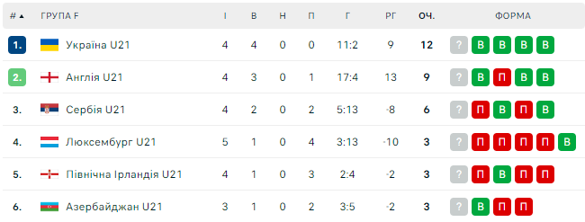 Англія та Сербія грають в одному квартеті з Україною. 1-ше місце в групі посідають «синьо-жовті» з 12 очками з 12 можливих, 2-й рядок у англійців (9), 3-й – у сербів (6).