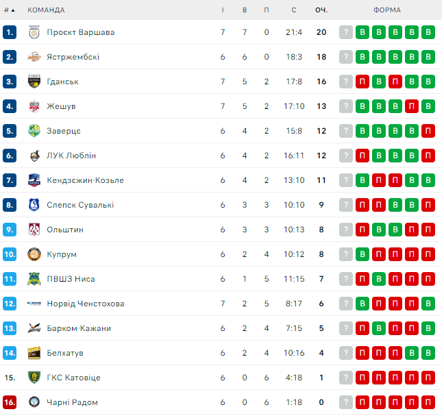 Чемпіонат Польщі з волейболу. Турнірна таблиця