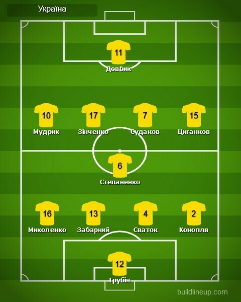 Україна: Трубін, Миколенко, Забарний, Сваток (Маліновський, 91), Конопля (Тимчик, 86), Степаненко (Піхальонок, 80), Мудрик, Зінченко (Сікан, 86), Судаков, Циганков (Зубков, 80), Довбик
