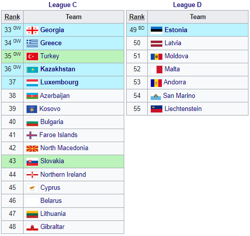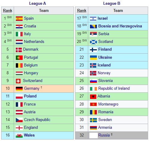 - GW: Переможець групи у Лізі націй A, B або C