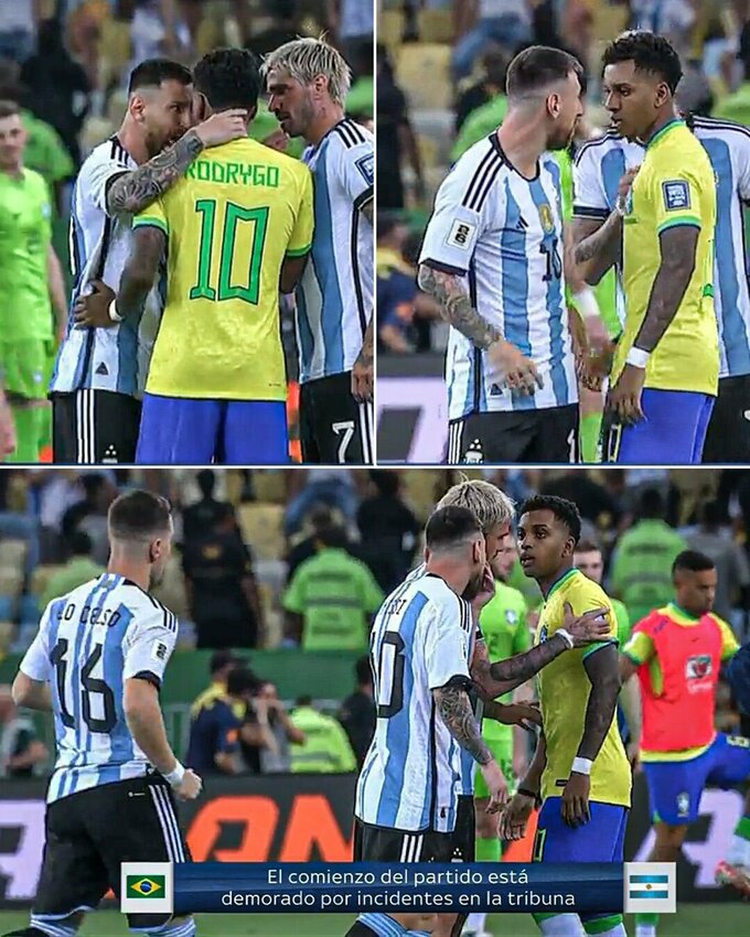 Збірна Аргентини все ж вийшла на поле і через 27 хвилин матч розпочався, але емоції перекинулися на футбольне поле. Наприклад, Мессі схопив за шию Родріго і висловив йому щось на підвищених тонах. Пізніше стало відомо, що бразилець назвав суперників «сцикунами», а Ліонель відповів, що вони «не сцикуни, а чемпіони світу».