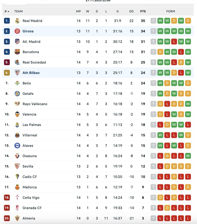 У понеділок, 27 листопада, відбудеться матч 14-го туру іспанської Ла Ліги, в якому зустрінуться каталонська «Жирона» та «Атлетік Більбао». Гра пройде у Жироні на стадіоні ««Естаді Монтіліві».