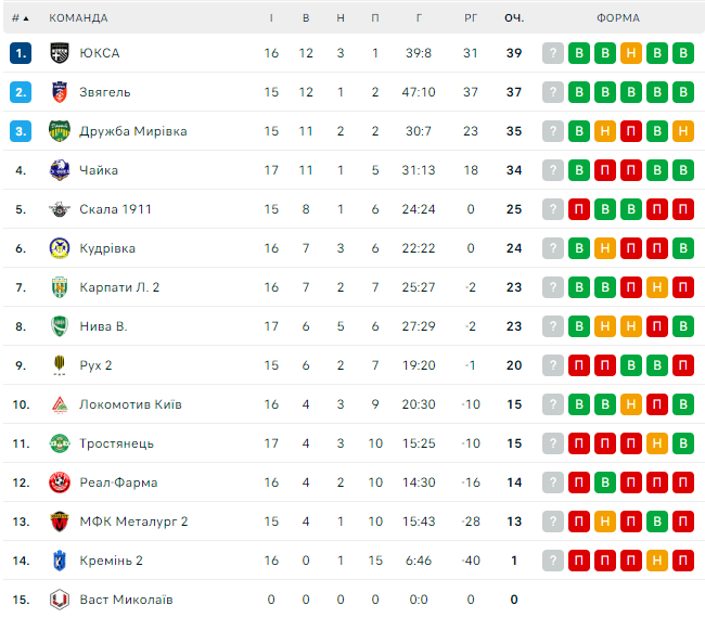 Турнірна таблиця