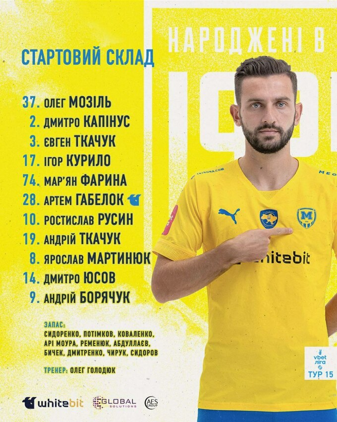 Запасні: Паст, Коркодим, Ковалюк, Хондак, Шарай С., Гакман, Світюха.