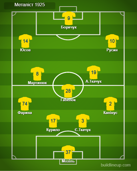 "Металіст 1925": Мозіль, Капінус, Ткачук Є., Курило, Фарина, Габелок (Бичек, 65), Русин, Ткачук А. (Коваленко, 9), Мартинюк, Юсов (Ременюк, 60), Борячук (Сидоров, 65).