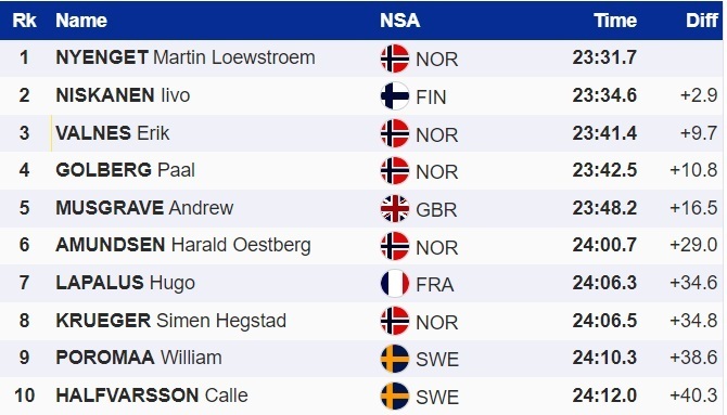 Розділку на 10 км у Руці виграв Мартін Льовстрьом Ньєнгет