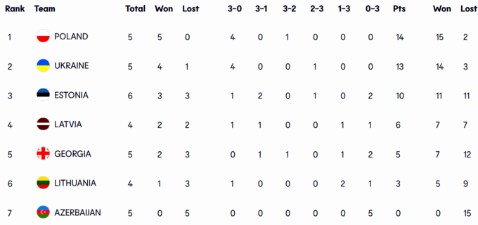 В турнірній таблиці українські волейболістки відстають від Польщі лише на одне очко