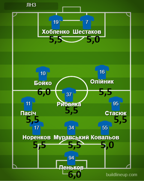 Заміни ЛНЗ: Тищенко - 5,5, Прядун - б/о.