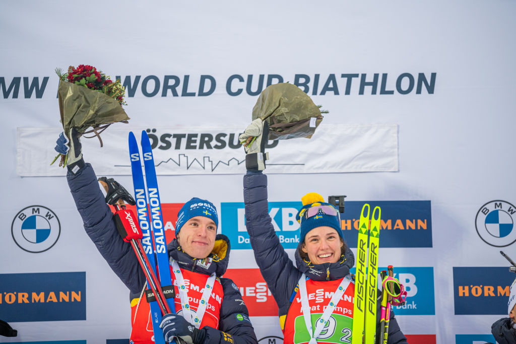 Головними фаворитами гонки вважалися господарі траси, які виставили найсильніший склад: Себастьян Самуельссон та Ганна Еберг. Можна уявити, як були шоковані глядачі на трибунах, коли перший етап їхні улюбленці зусиллями Самуельссона, який використав чотири додаткові патрони, завершили 17-ми! Але вже на наступному відрізку реактивна та швидкострільна Еберг-старша виправила становище, підняв шведів у топ-трійку. Своїм класним перфомансом вона ніби розбудила напарника по команді. Самуельссон блискуче відпрацював другий для себе етап і відправив Ганну за перемогою. Та, хоч і підпустила до себе молоду норвежку Арнеклейв, дозволивши їй прийти разом із собою на останню стрільбу, далі гралася, ніби кішка з мишею. Обидві відстрілялися з семи патронів, але Еберг зробила це значно швидше й полетіла за підтримки уболівальників за перемогою. Норвежці, зусиллями Стурли Легрейда та вже згаданої Арнеклейв, провели стабільну гонку, постійно перебували в лідируючій групі та стали другими.
