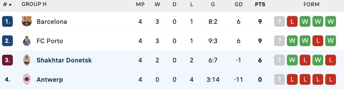 Після чотирьох матчів групового етапу донецький «Шахтар» посідає третє місце у групі Н з шістьма очками, а «Антверпен» йде останнім, не набравши жодного очка. Лідирують у групі «Барселона» та «Порту», в обох по девять балів.