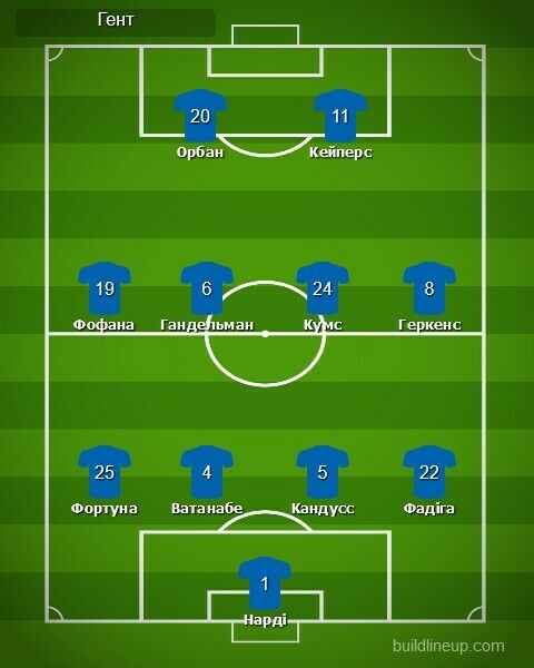 «Гент»: Нарді (Руф, 70), Фортуна (Тіссудалі, 70), Ватанабе, Кандусс (Турунаріга, 46), Фадіга, Гандельман, Кумс (Юльсагер, 59), Фофана (Лага, 71), Геркенс, Орбан, Кейперс