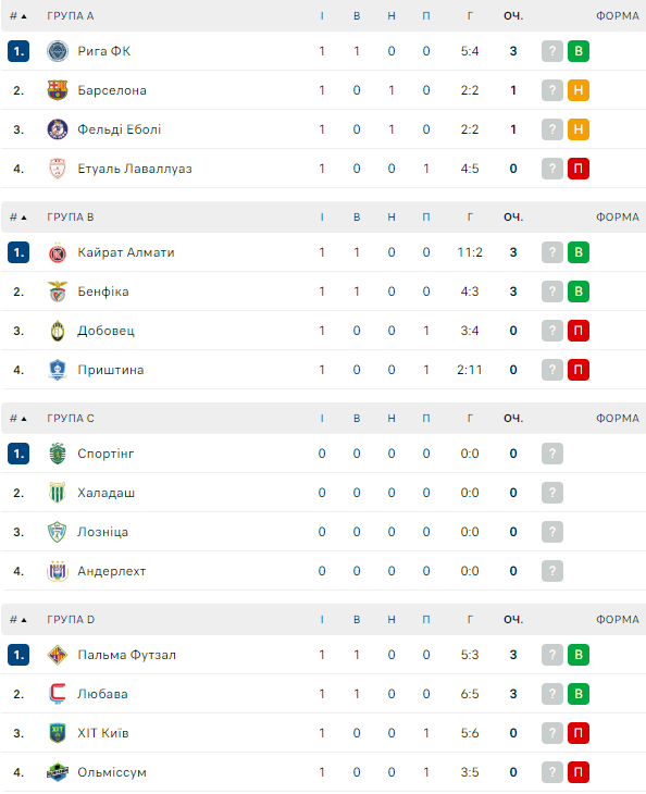 ЛЧ з футзалу. Еліт-раунд. Турнірні таблиці