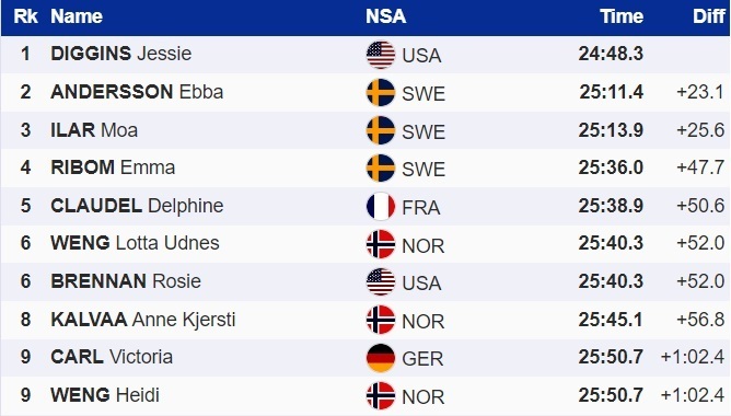 Американська лижниця Джессіка Діггінс виграла гонку з роздільним стартом на 10 км вільним стилем на етапі Кубка світу в шведському Єлліваре. Вона випередила двох господинь траси – Еббу Андерссон і Моа Ілар.