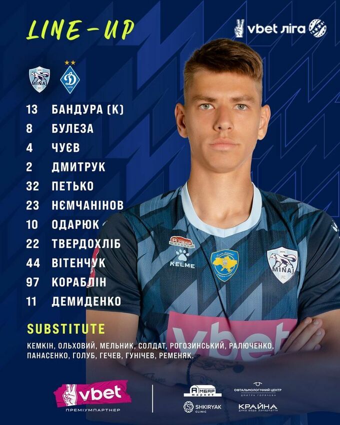 «Минай»: Бандура – Булеза, Нємчанінов, Чуєв, Дмитрук – Петько, Вітенчук – Одарюк, Твердохліб, Кораблін – Демиденко.