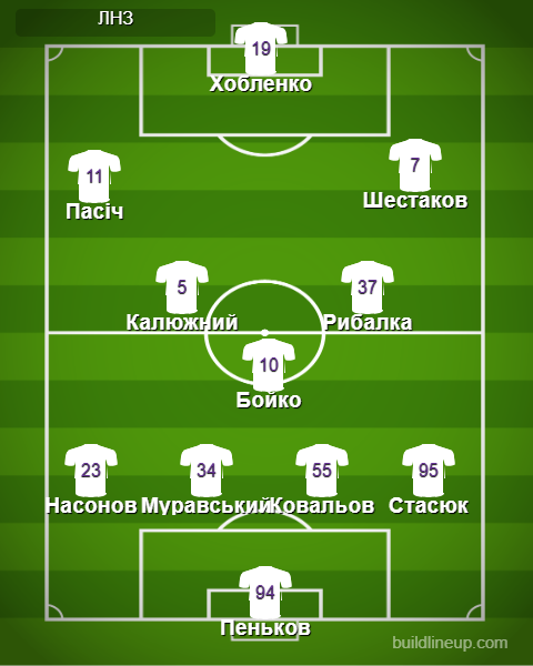 ЛНЗ: Пеньков - Стасюк, Ковальов, Муравський, Насонов - Бойко, Рибалка, Калюжний (Наумець, 65) - Шестаков (Олійник, 90), Хобленко (Прядун, 65), Пасіч (Савін, 77).