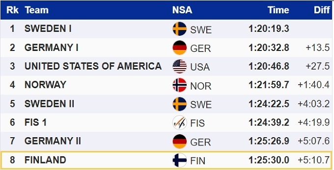 Збірна Швеції у складі Моа Лундгрен/Емма Рібом/Ебба Андерссон/Моа Ілар виграла жіночу естафету 4х7,5 км на домашньому етапі Кубка світу з лижних гонок у Єлліваре.