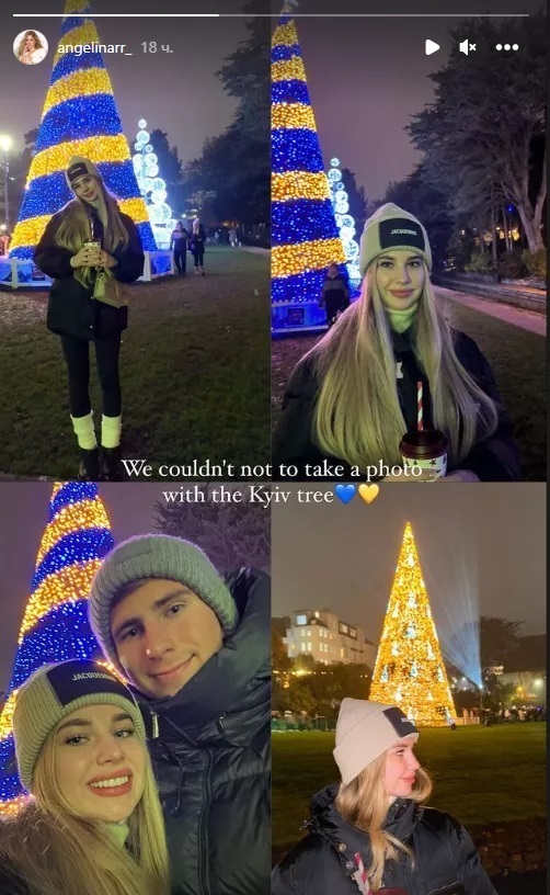«Ми не могли не зробити фото з Київською ялинкою», – написала дружина футболіста в соціальних мережах, прикріпивши кілька фотографій.