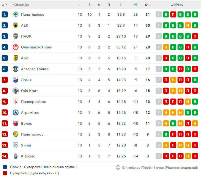 Наразі АЕК знаходиться на 2-й позиції у таблиці чемпіонату. У команди 30 очок після 13 зіграних турів. Лідер «Панатінаїкос» має 31 пункт.