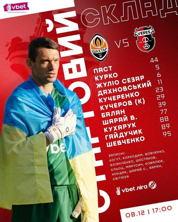 У п'ятницю, 8-го грудня, відбудеться поєдинок 17-го туру Української Прем'єр-ліги, у якому змагатимуться донецький «Шахтар» і рівненський «Верес». Матч відбудеться у Львові, на полі стадіону «Арена Львів», початок о 17:00.