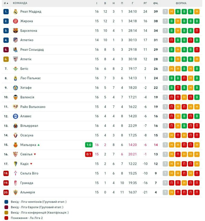 У «Реала» зараз 39 очок після 16 зіграних турів, а «Жирона» – 38.