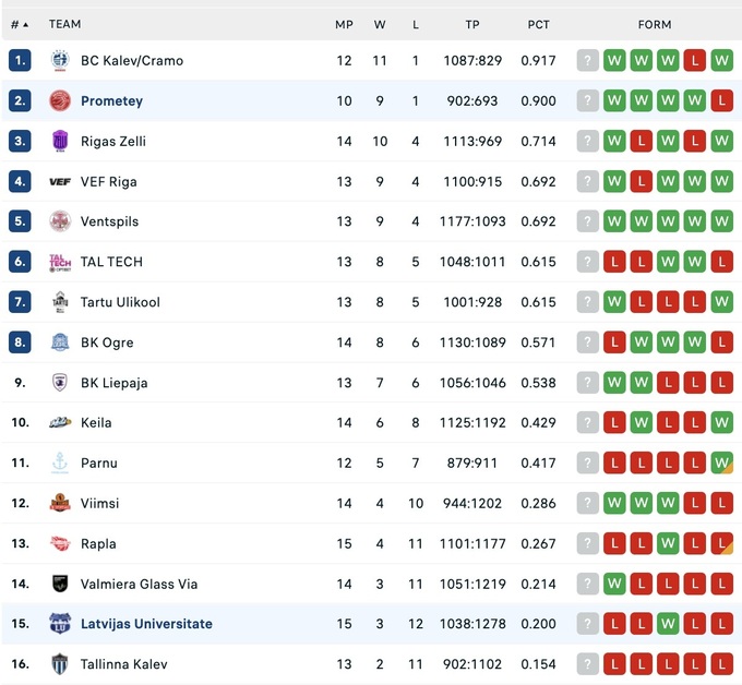 10 грудня о 15:00 пройде матч Латвійсько-Естонської баскетбольної ліги між командами «Прометей» та «Латвійський Університет».