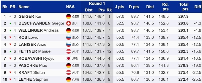 Гайгер на домашньому трампліні був явно сильнішим. Для ветерана Дешвандена найкращий результат кар'єрі. Ще й повторний давній рекорд трампліна.