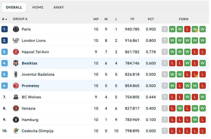 13 грудня о 19:00 БК «Прометей» (Україна) та БК «Бешикташ» (Туреччина) зустрінуться у черговому матчі регулярного сезону Єврокубка в латвійській Ризі.