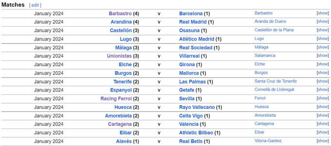 Поєдинки 1/16 фіналу іспанського Кубка відбудуться у січні 2024 року.