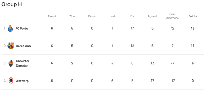 Команда Олексія Бєліка поступилася з рахунком 0:2 і завершила групу на третьому місці з 6 набраними пунктами. Далі вийшли «Порту» та «Барселона», які набрали по 15 пунктів.