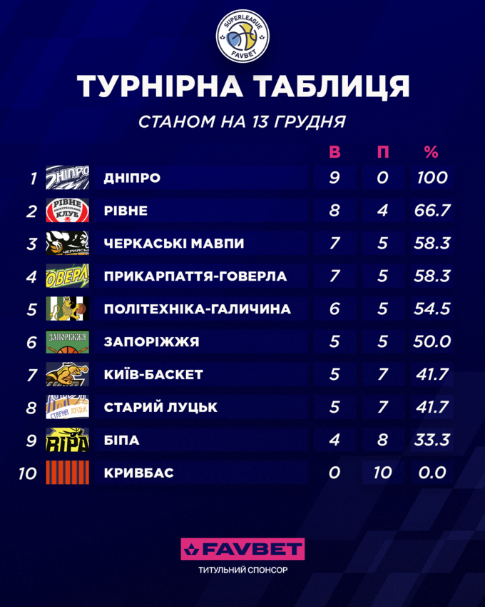 При цьому особиста статистика гравців залишається чинною. Після виключення «Будівельника» першу позицію тепер займає «Дніпро», а на друге місце піднявся БК «Рівне».