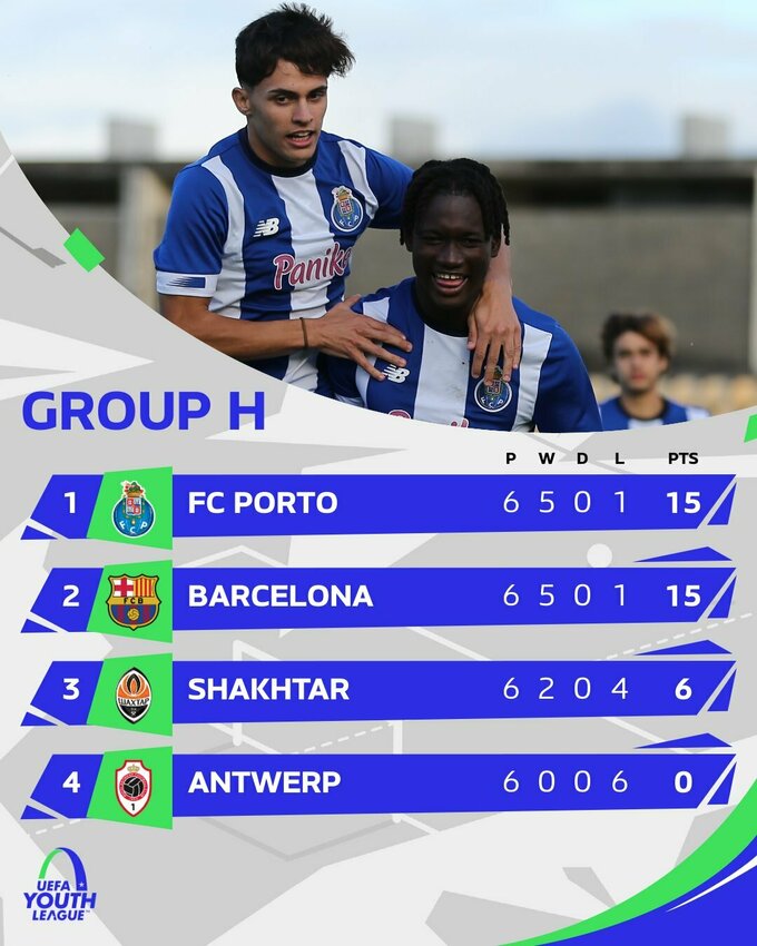 У групі H донецький Шахтар U-19 в останньому матчі програв Порту U-19 (0:2) і посів третє місце, не зумівши вийти у плей-оф.